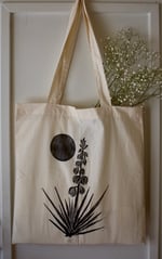 Handprinted linoleum cut tote bag. 100% Cotton from recycled materials. Printed using fabric paint.